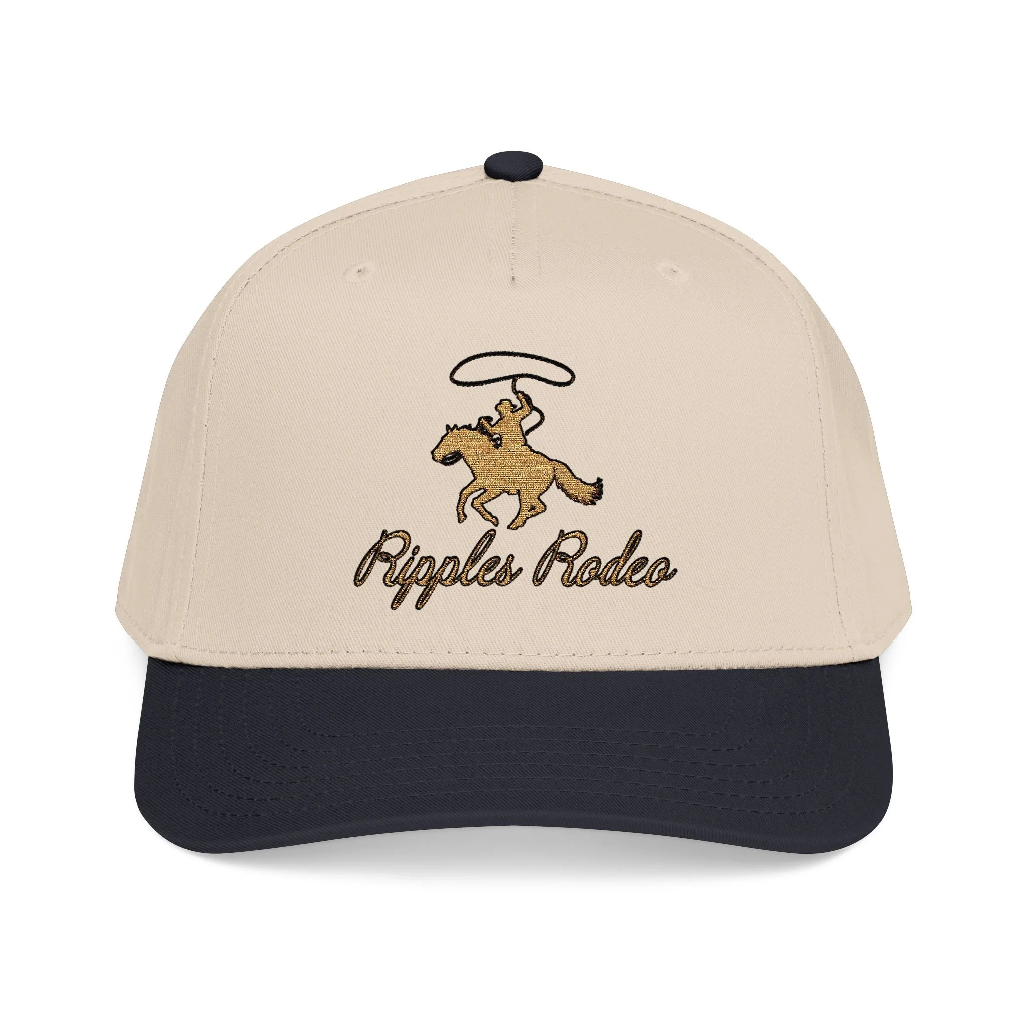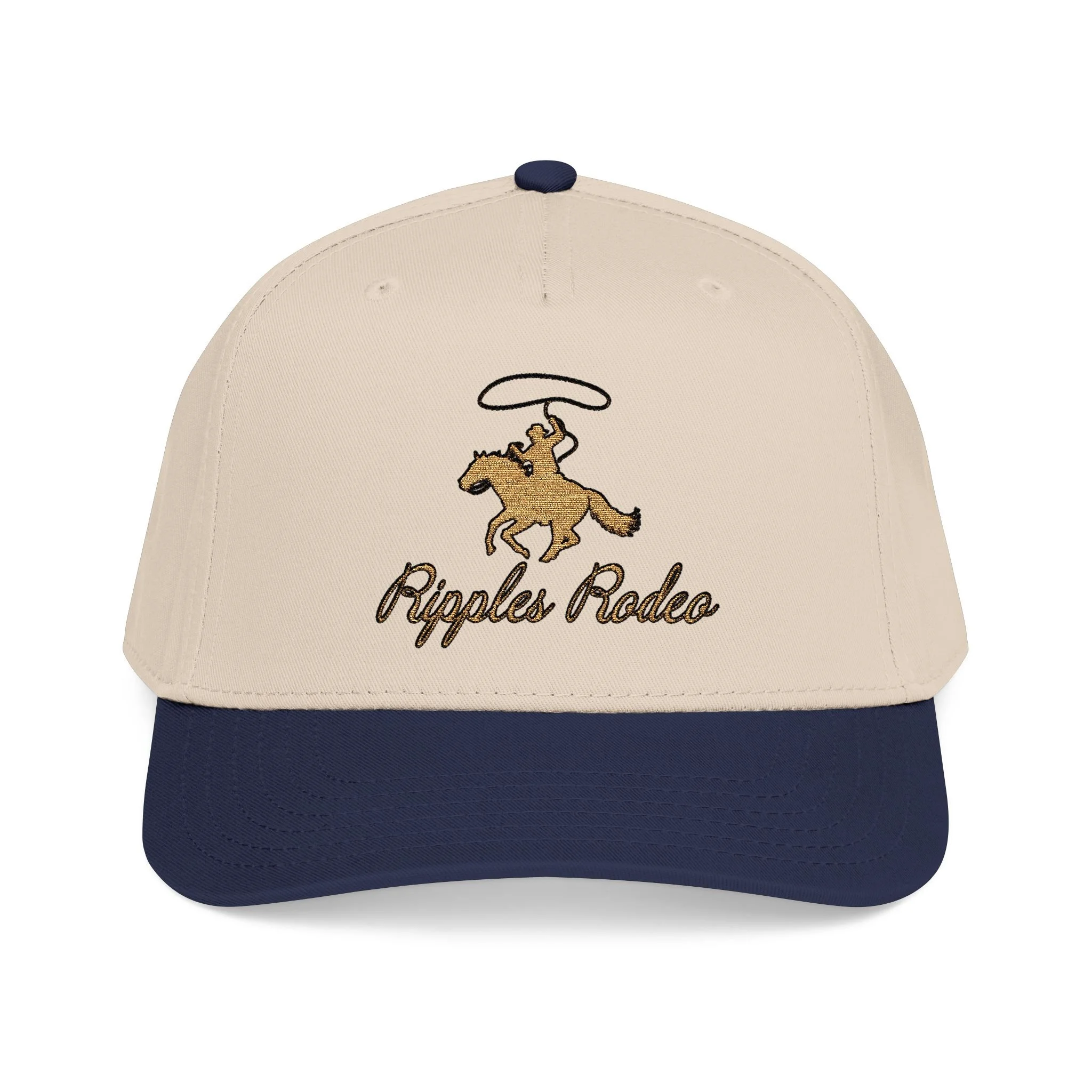 Image 1 of 5 Image 2 of 5 Image 3 of 5 Image 4 of 5 Image 5 of 5 Ripples Rodeo Baseball Cap $25.00 Inspired by a classic American Rodeo. Material: 65% Polyester / 35% Cotton Size: Select Size One size Color: Select Color Navy / Natural Black / Natural Quantity: Purchase Added! Inspired by a classic American Rodeo. Material: 65% Polyester / 35% Cotton